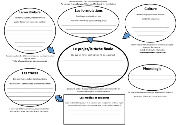 Dans le cadre d’une approche actionnelle, déterminer les contenus d’une séquence consiste à identifier clairement ce que les élèves devront apprendre et mobiliser pour réaliser le projet final. La carte heuristique que nous proposons sur cette page permet de visualiser ces contenus et de les organiser de manière structurée.