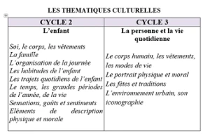 - Le vocabulaire : mots que les élèves doivent connaître pour participer au projet (ex. : father, mother, son, daughter, colours, métiers…).