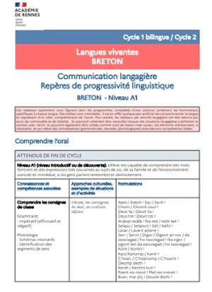 Communication langagière Repères de progressivité linguistique BRETON - Niveau A1