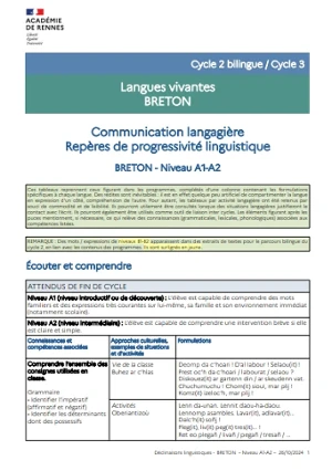 Communication langagière Repères de progressivité linguistique BRETON - Niveau A1-A2
