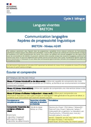 Communication langagière Repères de progressivité linguistique BRETON - Niveau A2-B1