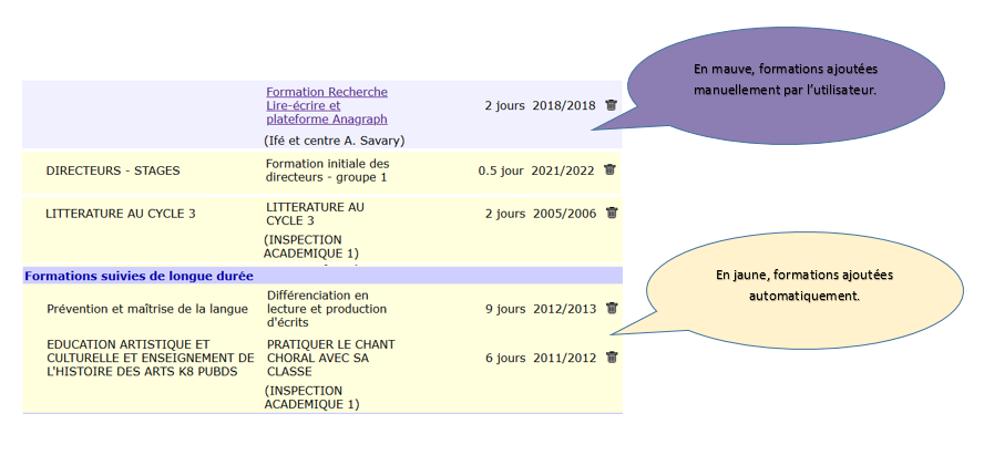Vous avez également désormais la possibilité de consulter automatiquement les formations, les animations pédagogiques et les stages auxquels vous avez participé dans le cadre du plan de formation depuis septembre 2005.