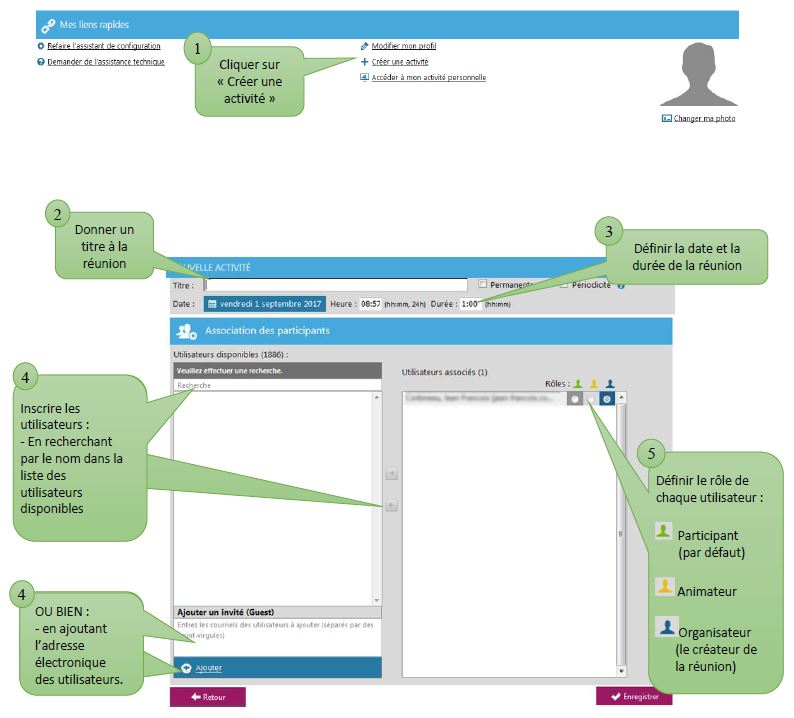 Étape 5/ Définir le rôle de chaque utilisateur (participant, animateur ou hôte).