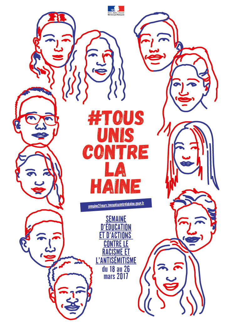 Cette année, la Semaine d'éducation et d'actions contre le racisme et l'antisémitisme se déroulera du 18 au 26 mars 2017. Cette semaine soutenue par le ministère et la DILCRA, est l'occasion de donner une impulsion nationale forte aux actions éducatives menées dans le champ de la prévention du racisme et de l'antisémitisme, de la défense et de la promotion des droits de l'homme et des principes fondamentaux de la République. Sont aussi valorisés les engagements de l'ensemble des institutions et de leurs partenaires en faveur des valeurs de liberté, d'égalité et de fraternité.