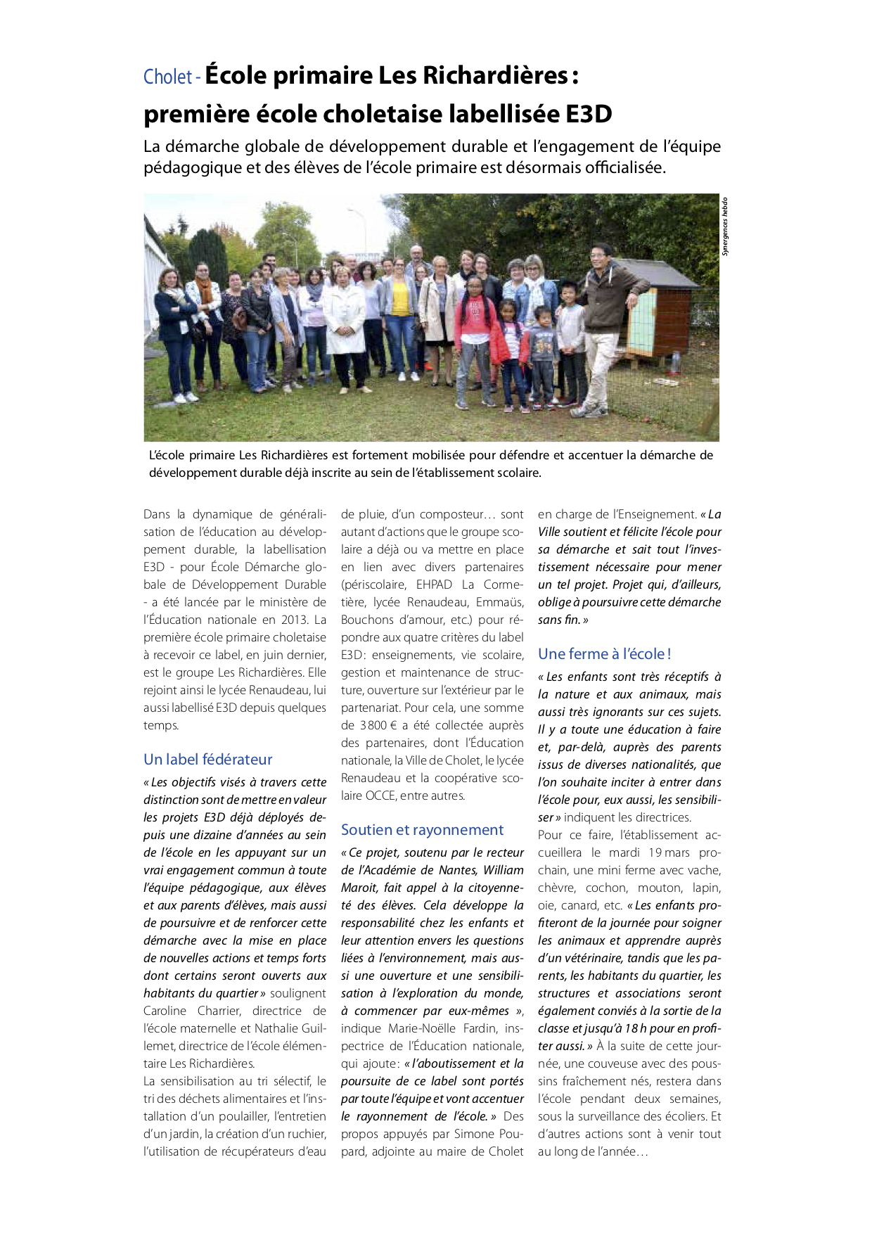 Synergences hebdo - le journal de l'Agglomération du Choletais N°499 - Du 7 au 13 novembre 2018.