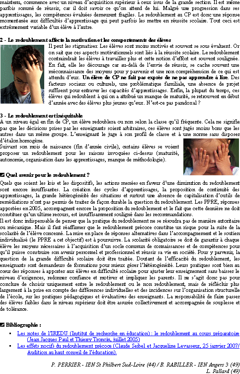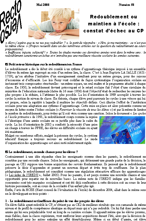 n°58 : Redoublement ou maintien à l'école : constat d'échec au CP