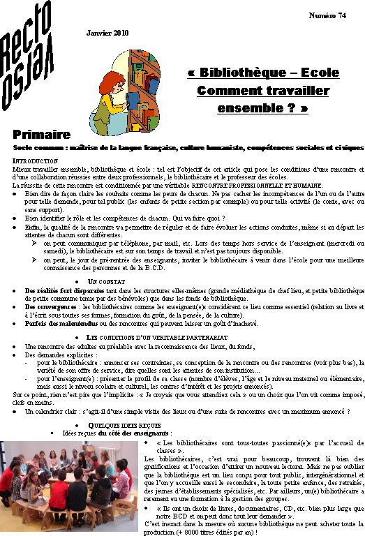 n°74 : Bibliothèque - École. Comment travailler ensemble ?