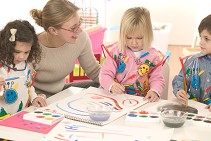 - L'atelier accompagné (régulé souvent par l'ATSEM) : les activités proposées par l'enseignant permettent l'exercice d'une compétence déjà travaillée, sa consolidation par l'usage, son réinvestissement, son transfert à d'autres situations.