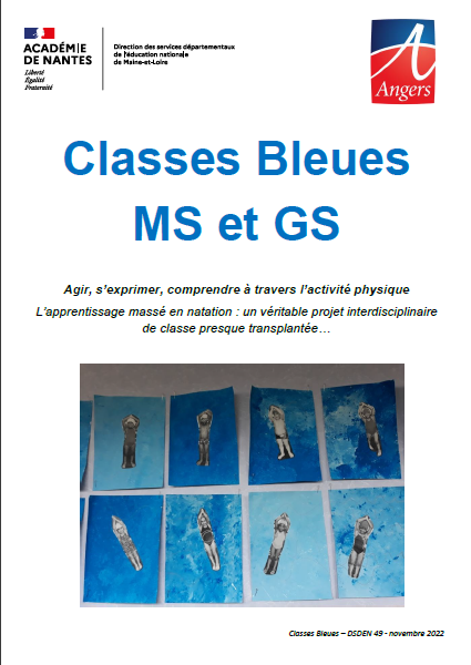 Dans le cadre du dispositif "Aisance aquatique", les Classes Bleues permettent d'initier les élèves à la natation dès la maternelle. L’objectif est de répondre à un enjeu de notre société qui est la prévention et la lutte contre les noyades. Les classes de Grande Section (et de MS-GS) des écoles angevines ont ainsi l’opportunité de venir à la piscine d'AquaVita sous la forme d'un apprentissage massé : une séance de 40 minutes chaque jour (sauf le mercredi) pendant 2 semaines. L'apprentissage massé en natation s'inscrit alors dans un véritable projet interdisciplinaire.