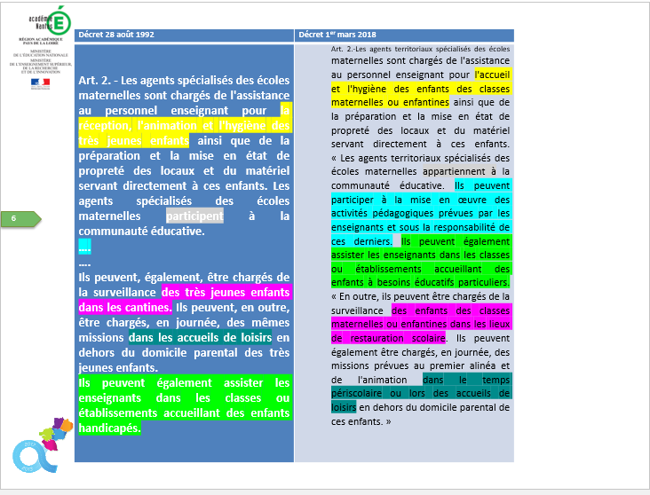 portant diverses dispositions statutaires relatives aux agents territoriaux spécialisés des écoles maternelles