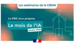 Les webinaires du mois de l'IA proposés par la DNE Direction nationale pour l'éducation, la CREIA communauté de réflexion en éducation sur l'intelligence artificielle et les académies.