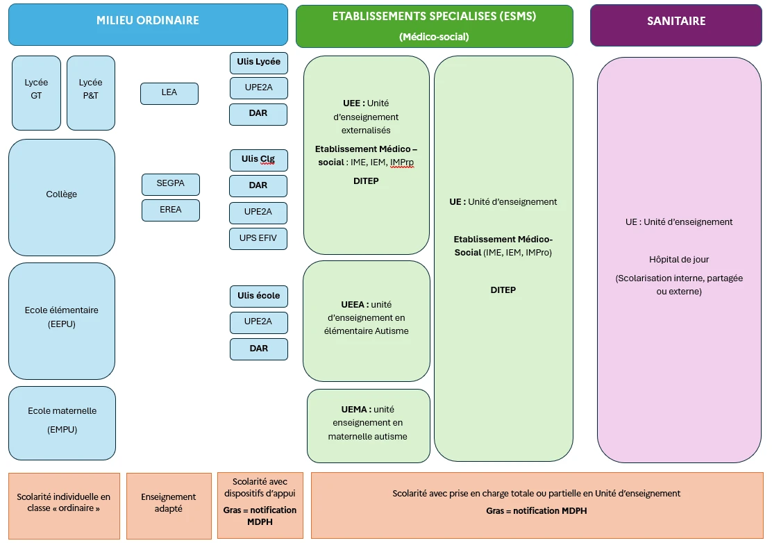 Vous retrouverez des présentations de chacun des dispositifs ou mode de scolarisation mentionnés en cliquant ci-après :