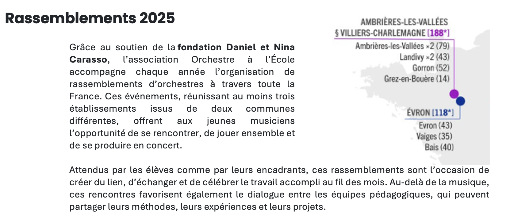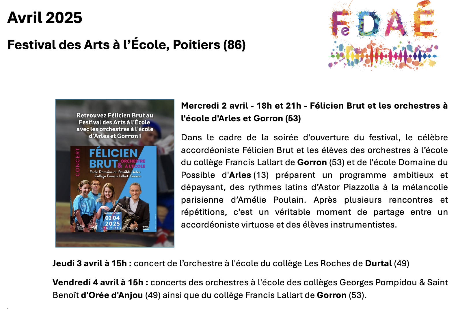 agenda des restitutions des Orchestres A l'Ecole (OAE) de l'Académie de Nantes