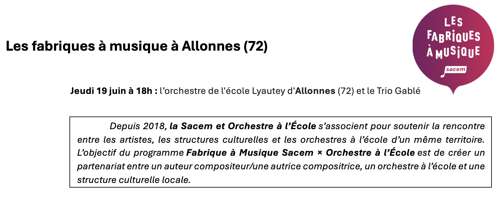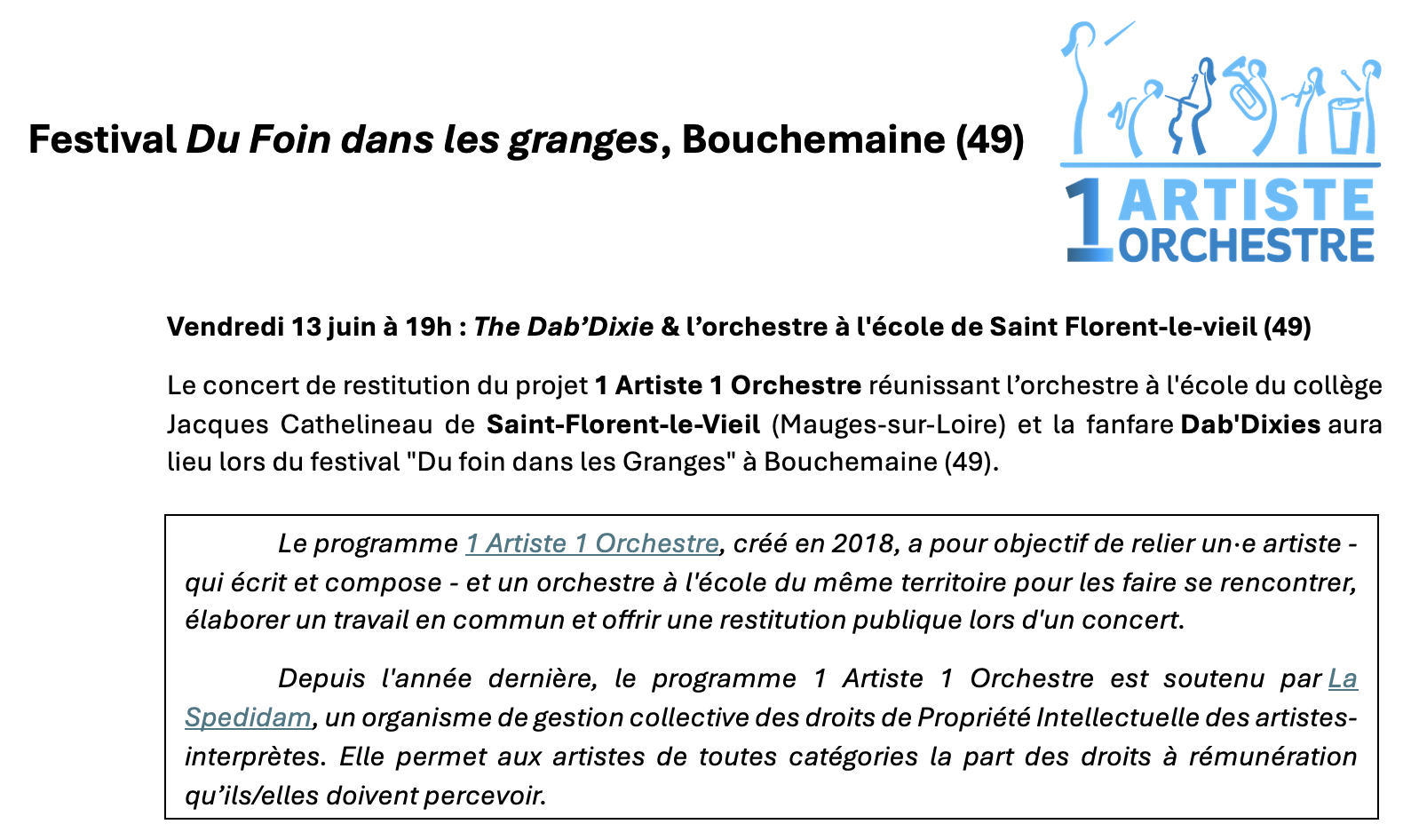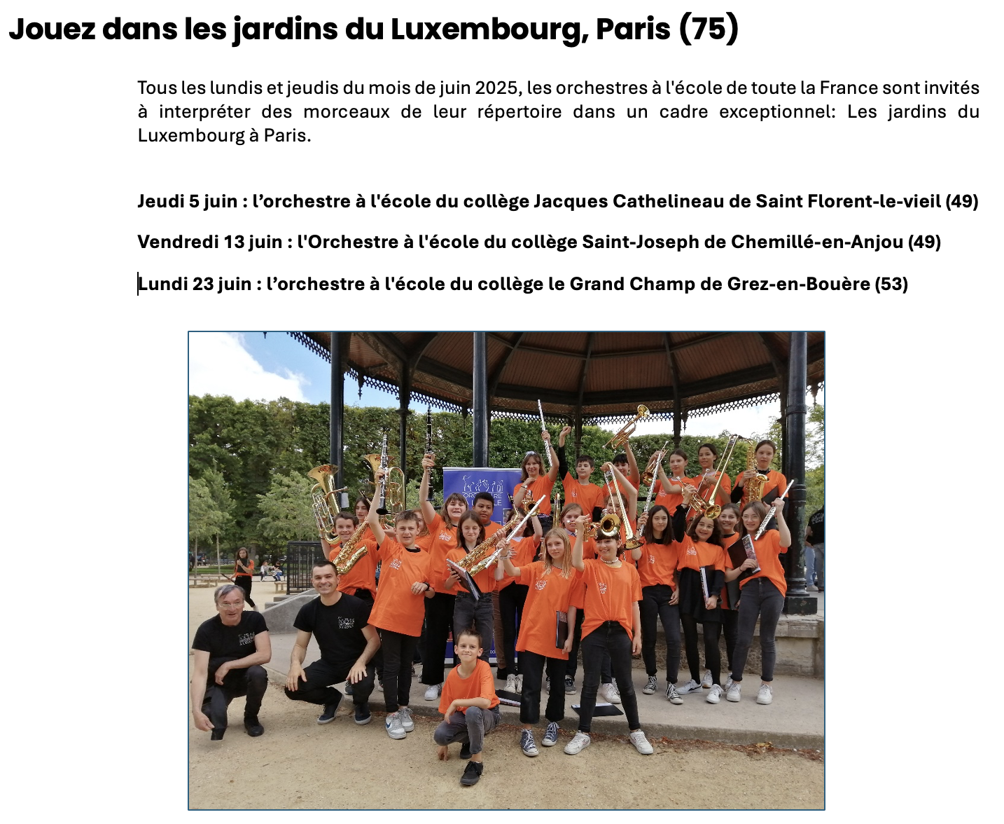 Comme chaque année, les mois d'Avril, Mai, Juin sont propices aux restitutions dans les différents lieux culturels, et c'est le cas, bien évidemment des orchestres à l'école. Voici donc un petit tour d'horizon des moments forts dans l'Académie de Nantes.