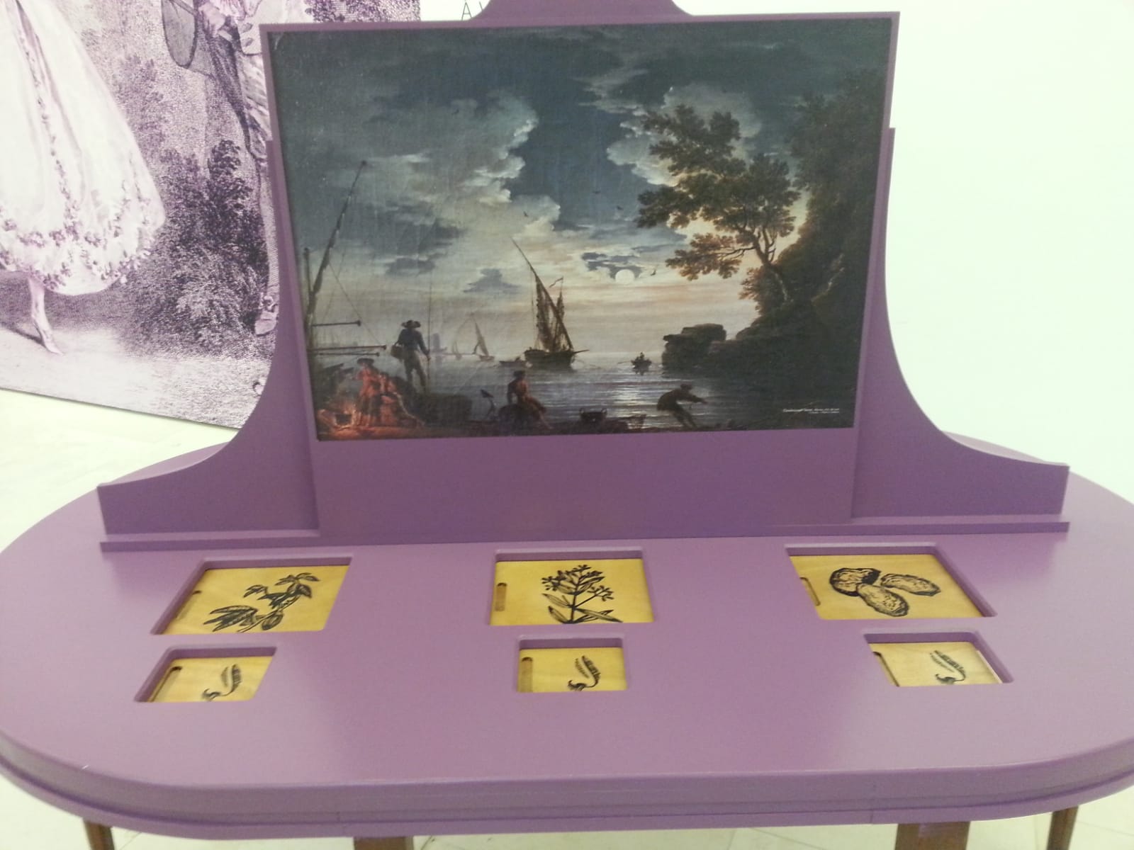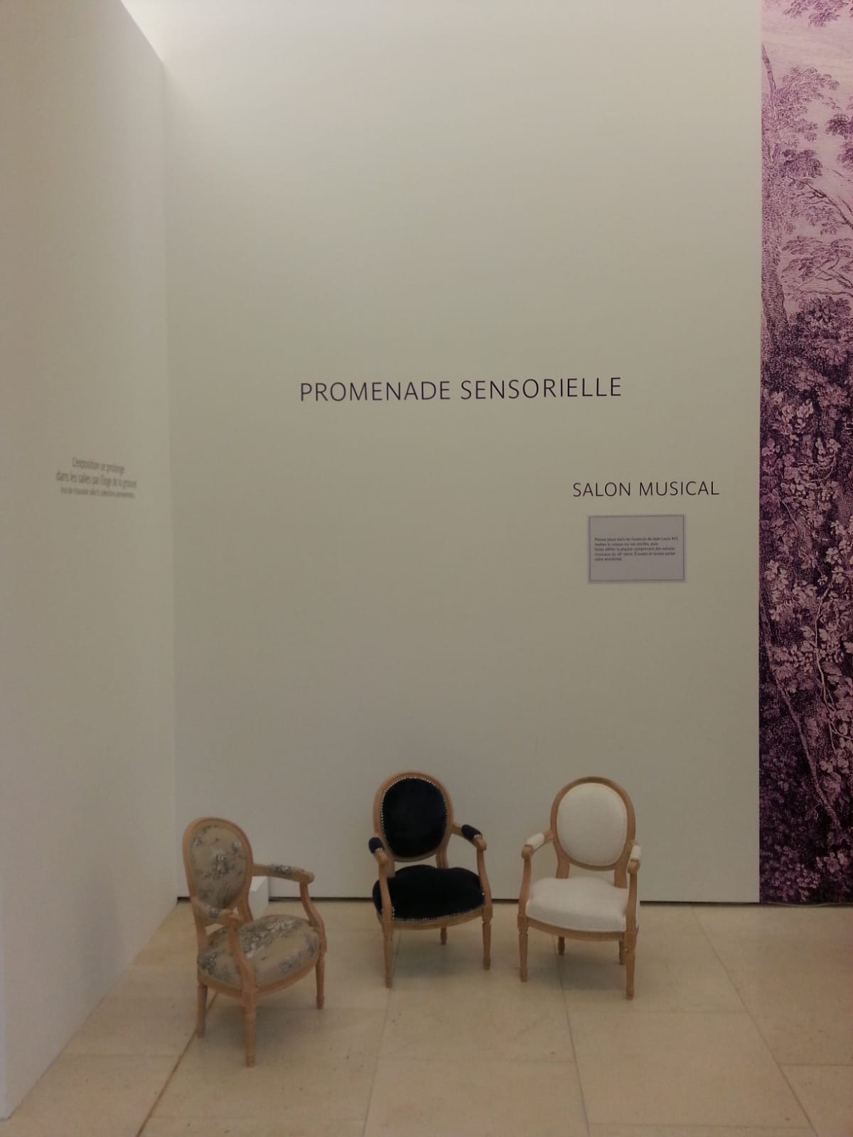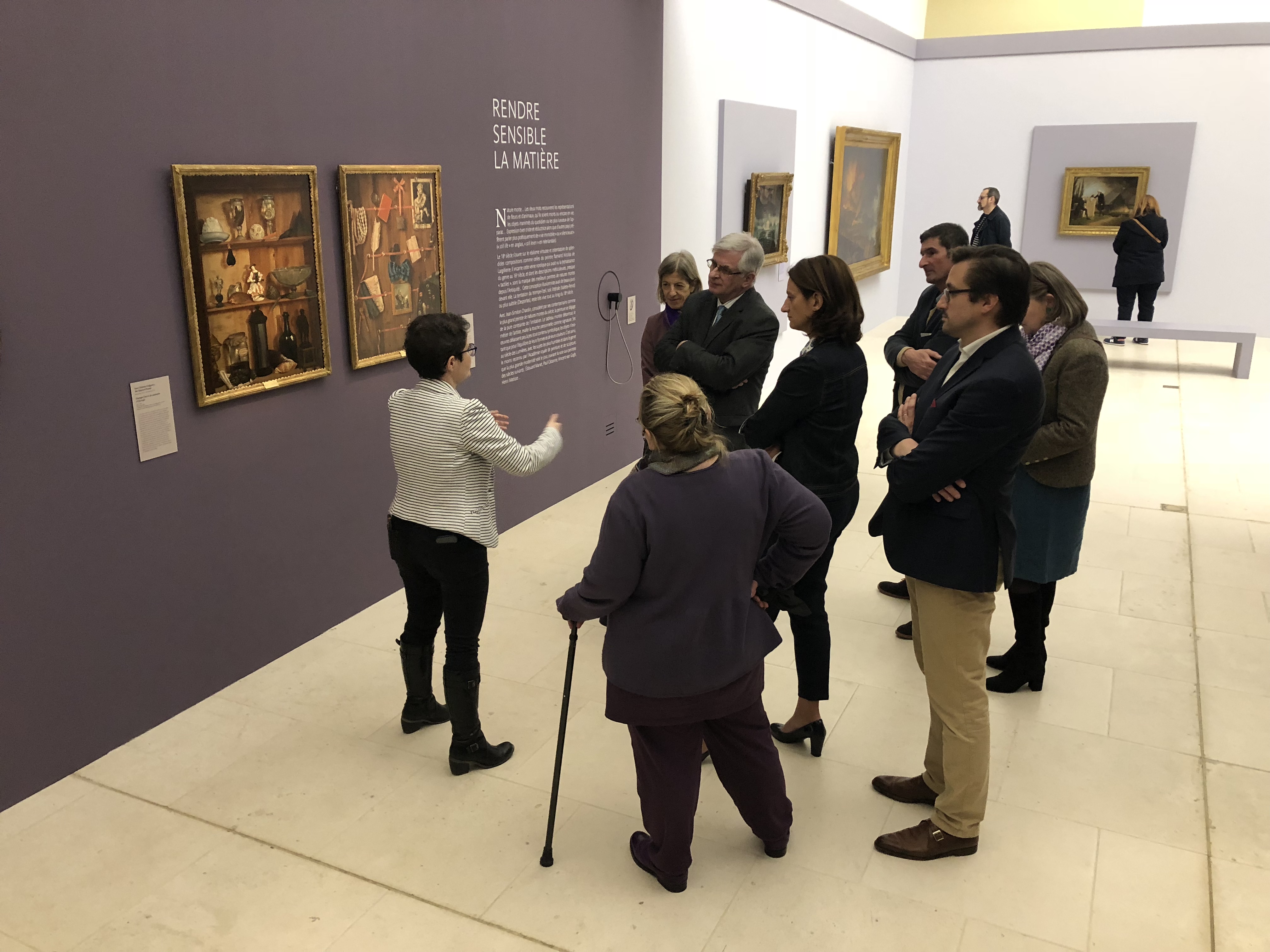 - Pour l’espace « l’art et la matière » : 1 « tableau tactile » de « la Camargo » (peinture phare de l’exposition ) et 3 pupitres présentant les différents textiles de l’époque (textiles fournis par une entreprise du patrimoine Français). Ceci réalisé dans le cadre des cours de tapisserie décor.