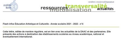 Une lettre « Flash Info » est également envoyée régulièrement à tous les enseignants de l’académie, sur la boîte professionnelle webmail. Accéder au dernier Flash info de la DAAC.