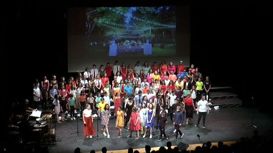 Restitution de ce projet le mardi 7 juin à la salle Coppélia, à la Flèche. Ce concert réunissait les chorales des collèges Vieux chêne, Marcel Pagnol de Noyen-sur- Sarthe, Suzanne Bouteloup de Mayet, Trouvé-Chauvel de La Suze ainsi que l’atelier théâtre de Mayet, soit en tout 140 chanteurs et acteurs sur scène.