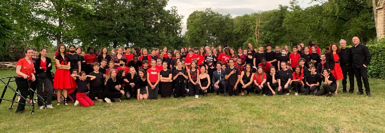Participation des élèves des collèges Kennedy (Allonnes), Jean Cocteau (Coulaines), Ambroise Paré (Le Mans), Saint-Julien (Le Mans), du lycée Notre-Dame (Le Mans) et les adultes des choeurs du réseau des enseignements artistiques coordonnés par l’établissement de Sargé-lès-Le Mans.