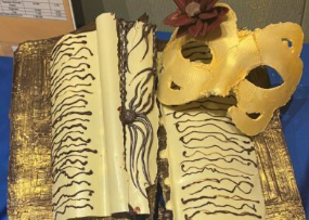 Dans le cadre de leur chef d’œuvre, les élèves de 2ème année ont réalisé des masques de comédiens traditionnels et des livres en chocolat, sur le thème Molière, le masque et la plume. Accompagnés par des comédiens professionnels, les élèves ont présenté leurs productions culinaires et théâtrales devant des écoliers et des résidents d’EPADH.