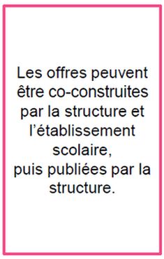 La construction se fait à partir d'offres de structures partenaires avec les enseignants. Le financement varie en fonction de l'âge élèves.