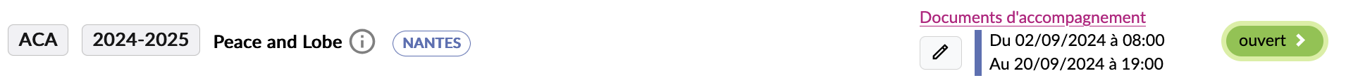 Les inscriptions se font directement sur ADAGE, par un appel à projet intitulé "Peace and Lobe - Académie de Nantes". Cette campagne sera ouverte à partir du 2 septembre jusqu'au 20 Septembre 2024