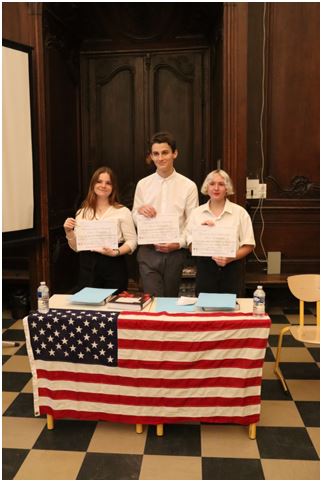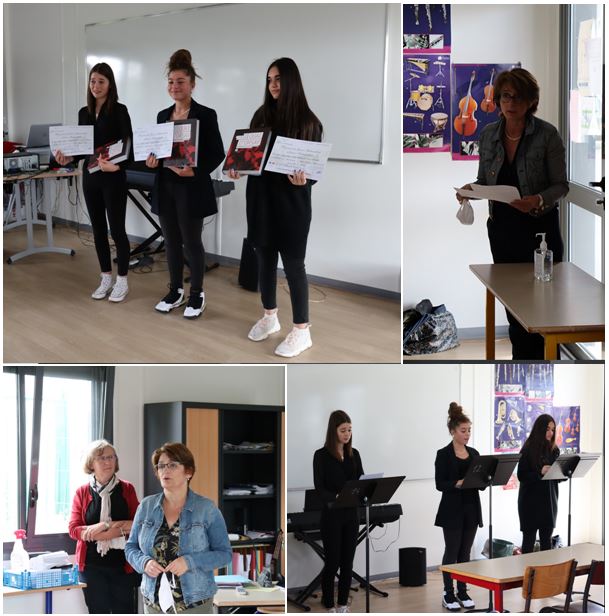 Des cérémonies de remises des prix avec prestations orales des élèves ont eu lieu dans les établissements vainqueurs en présence de Mme Minier, Déléguée Académique à l'Éducation Artistique et à l'Action Culturelle (