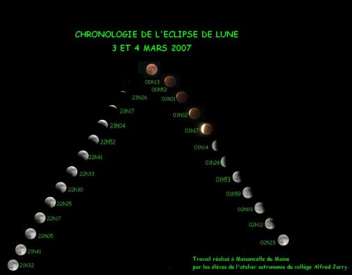 2006-2007 : Etude de la Lune à l'occasion de son éclipse, filmée et photographiée par les élèves, étude de quelques constellations