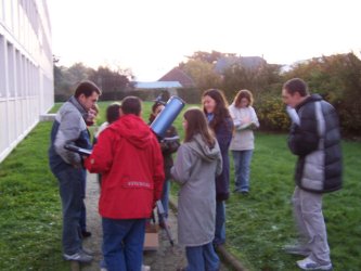 Les élèves, encadrés de leurs enseignants réalisent des observations avec la lunette et le télescope du collège. Le groupe a aussi pu observer Vénus au télescope et à la lunette à l'observatoire de Maisoncelles du Maine le 6 janvier 2009