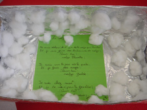 Parallèlement l'idée d'associer le texte à un objet est venue (ex. : écrire un poème sur les vacances sur une tongue ou dans une boîte avec du sable et des palmiers, poème sur l'hiver dans une boîte à ambiance avec de la neige etc).