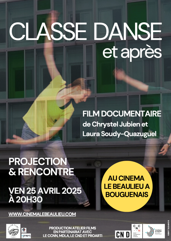 Vendredi 25 avril à 20h30 au cinéma Le Beaulieu à Bouguenais sera projeté le film documentaire « Classe danse et après », en présence de la réalisatrice Chrystel Jubien et de Laura Soudy-Quazuguel, professeure et chercheuse en danse, coordonnatrice territoriale danse DRAEAC 44.