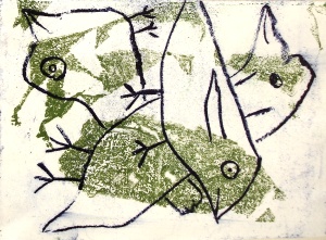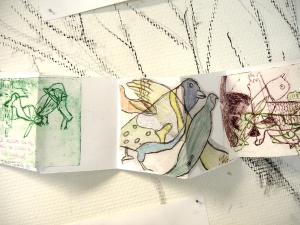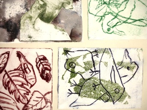 Dans ce cadre, nous avons invité le Petit jaunais pour initier les élèves à la lithographie. Nancy Sulmon et Jean-François Assiés ont aussi présenté certaines de leurs éditions (estampes et livres d'artistes). En parallèle, les élèves ont aussi découvert et pratiqué la gravure.