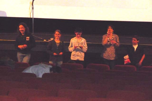 Bien sûr, c'est sous le regard et la direction chaleureuse, mais si vigilante, judicieuse et précise de leur professeur, Nathalie Rioux, qu'une telle expérience a pu être menée. Et l'implication si précieuse de la documentaliste, Geneviève Bousseau, la collaboration active de la bibliothécaire, Nathalie Le Ludec, ont beaucoup contribué aussi à la réussite de la ce travail commun. Que tous les élèves y aient été associés et y aient participé de la même façon me paraît un autre aspect essentiel. Au final, après tant d'efforts consentis, à les observer sur la scène de la salle de cinéma, il m'a paru qu'ils étaient heureux. Moi aussi.