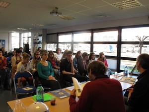 le public de lycéens et médiateurs du livre Elle a été préparée par Mme Virginie Guiraud, du CRL, et était destinée à des médiateurs du livre, mais aussi ouverte à des lycéens avec leurs enseignants, et tout particulièrement des lycéens suivant l'enseignement d'exploration "littérature et société".
