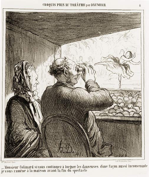 On s'est inspiré pour cette activité des caricatures de spectateurs que Daumier a réalisées au XIXème siècle et que l'on peut trouver rassemblées dans le livre Les gens du spectacle, éditions Michèle Trinckvel.