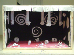 Avec tout ce qu'elle peut avoir d'exploratoire, la fabrication d'un objet, à partir de la récolte de matériaux, amène les élèves à faire des choix, à s'approprier des espaces (espace personnel de travail, de production, d'échange). L'exposition des réalisations individuelles est le point d'orgue d'une mise en scène des boîtes, habitats, vitrines. Collège Jacques Prévert Herbignac, 6ème bleue