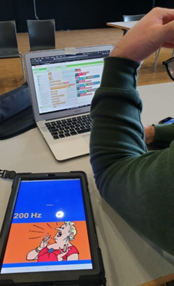 L'application programmée en autonomie permet de personnaliser l'interface graphique visible à l'écran. Un protocole scientifique et technologique est mis en place pour l'utiliser avec des tubes plastiques afin de régler leur longueur pour s'adapter à la partition [cf. "Stand by me"].