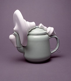 L'œuvre est une sculpture, composée d'un objet réel, une théière et d'un volume en plâtre. Cette forme moulée n'est pas arbitraire, elle est l'empreinte et le déploiement dans l'espace de la ligne de contour de l'objet. Le vide devient du plein, il est rendu tangible, il se manifeste.