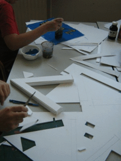 "Les élèves avaient déjà une représentation du bâtiment du FRAC grâce au prêt de la valise de livres d'artistes qui nous avait été prêté l'année précédente et dont la forme est calquée sur le bâtiment."