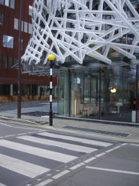 Pour le bâtiment Manny, Angela Bulloch propose The Zebra Crossing - Regulations and General Directions : une œuvre qui crée une connexion entre le bâtiment et son environnement immédiat, entre l'extérieur et l'intérieur, entre l'espace public et l'espace privé.