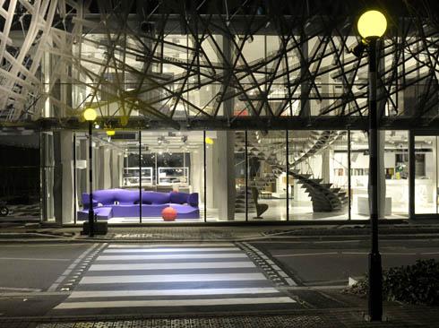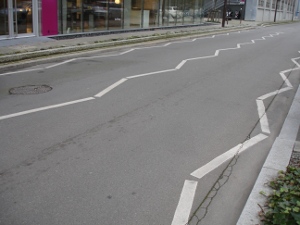 Et comme pour troubler encore un peu plus nos sens, elle prolonge le passage piéton à l'intérieur du bâtiment. Entre les deux, sur la vitre qui sépare l'espace public de l'espace privé, elle livre son protocole de création en affichant des extraits du décret d'application britannique relatif aux passages piétons.