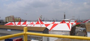 Créée pour être éphémère cette oeuvre a été pérennisée à la demande de la ville de Saint Nazaire avec l'accord des entreprises concernées.