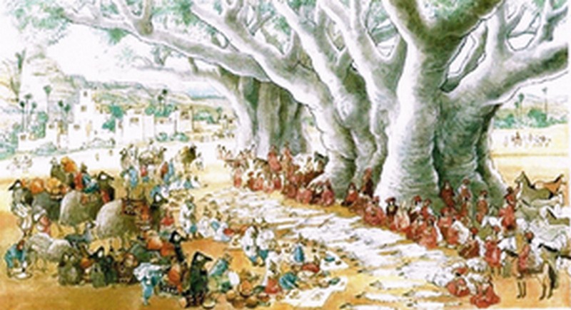 concours de nouvelles 2012 Etonnants Voyageurs La totalité de ses marchandises tenait sur un tapis usé : les maigres richesses d'un pied poudreux encore novice, au tout début de sa vie d'arpenteur du désert. Mais la fortune ne sourit qu'à ceux qui la tentent. Son oncle, par exemple, avait commencé avec beaucoup moins que ça, et maintenant c'était un riche négociant qui conduisait des caravanes de trois cent têtes jusqu'à la mer Noire.
