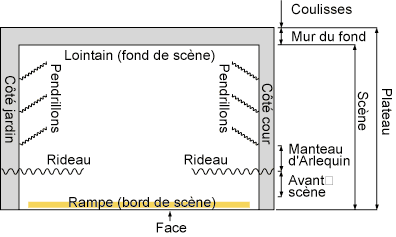 Si les élèves ne connaissent pas les expressions théâtrales, ils peuvent aller en chercher le sens dans l'excellent Dictionnaire de la langue du théâtre, mots et moeurs du théâtre d'Agnès Pierron, éditions Robert.