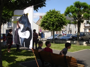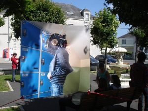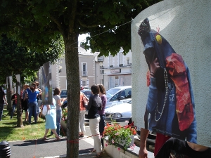 Ces photographies, imprimées sur bâches de grand format, ont été installées dans le village durant la durée de l'exposition des masques au collège.
