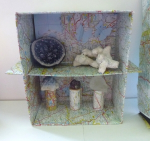 Suite aux collectes, intuitivement, un ensemble de créations a émergées sous la forme de cabinets de curiosités. Chaque élève a réalisé son propre « Cabinet de curiosités » dévoilant les secrets d'une enfance recomposée : celle de la poésie de l'objet liée à l'émotion que procurent les couleurs, les végétaux ou les insectes.