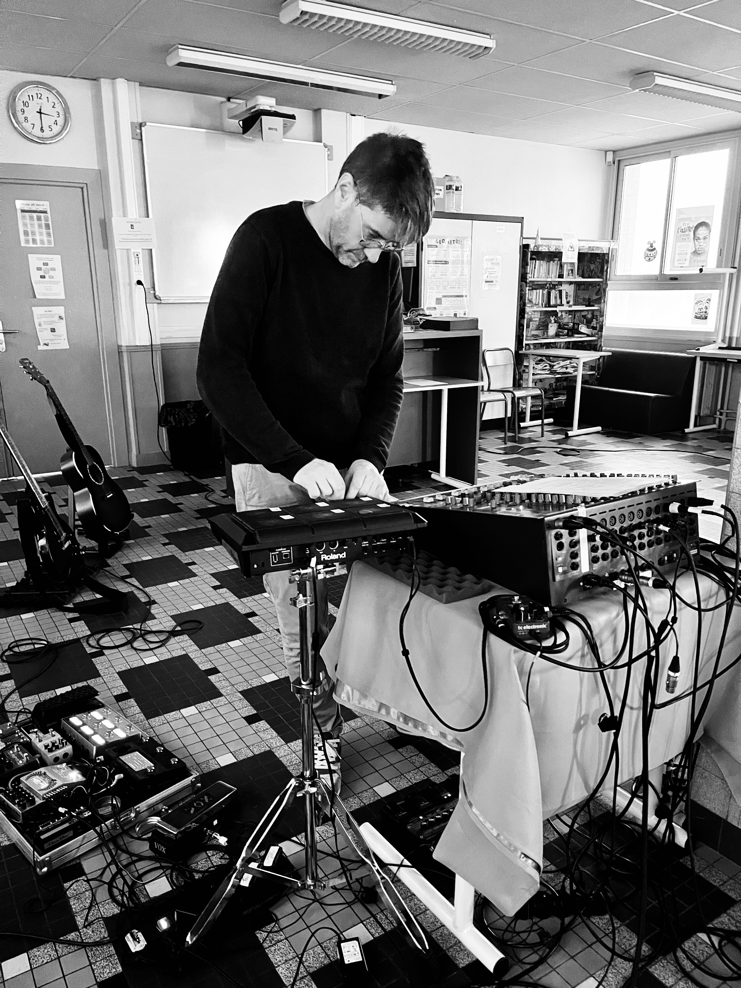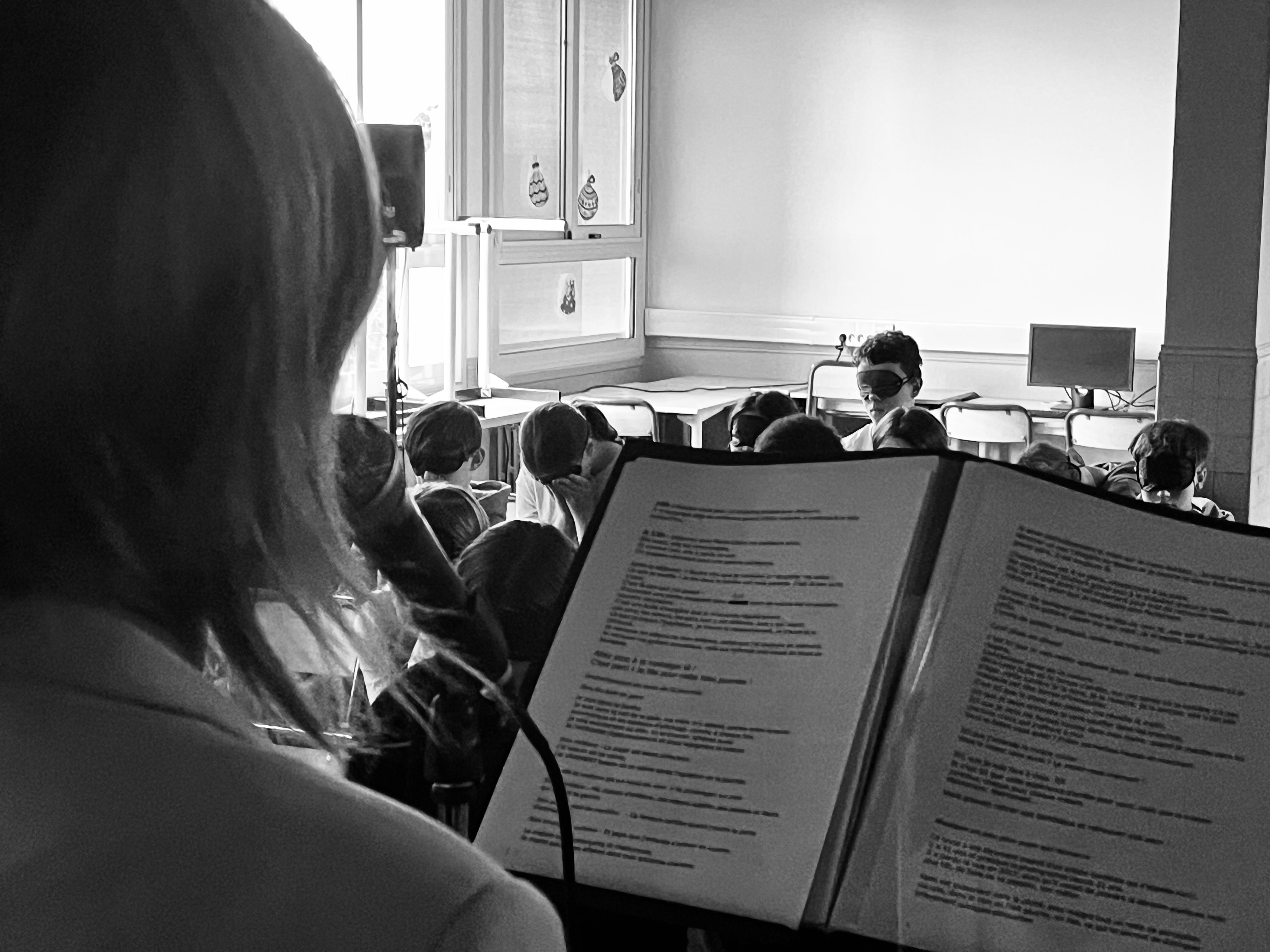 En guise d’aboutissement de séquence, les élèves ont pu bénéficier d’une rencontre avec des artistes, venus leur présenter le fruit d’un travail mené entre Marina Guittois, audiodescriptrice de spectacle vivant et le musicien Lyricx.