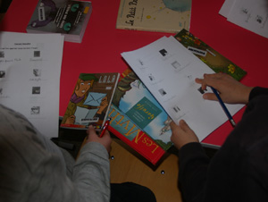 En fonction des livres qu'ils ont lu, les élèves se mettent par deux et répondent à l'un des questionaires élaborés sur les livres les années précédentes (pour les livres qui étaient déjà dans la sélection.