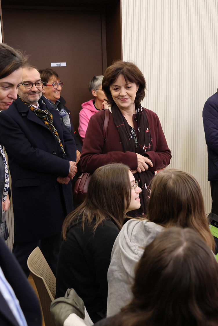 En présence de M. le maire de Châteaubriant, de ses adjoints, de Mme la directrice des affaires culturelles (DRAC), de M. le directeur académique des services de l'Education nationale de la Loire-Atlantique (DSDEN 44), de M. le principal du collège Schuman, de son adjoint, de professeurs du collège et de quelques élèves,