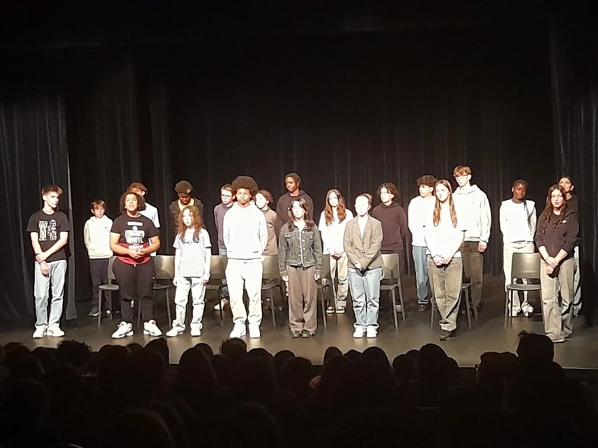 Cette première étape leur a fourni des éléments pour créer dans un second temps une saynète par collège, évoquant par exemple la visite de De Gaulle à Nantes en 1945, la dépose des emblèmes du Régime de Vichy, le retour des prisonniers de guerre, la commémoration des 50 otages, la poche de Saint Nazaire et enfin des portraits de femmes résistantes. Ce travail d’écriture, mené par les professeurs, a permis aux élèves d’être au contact de l’Histoire. Ils ont pu être accompagnés et guidés par des comédiens de la compagnie de théâtre La Fidèle Idée lors d’ateliers de pratiques théâtrales, pour incarner au mieux ces hommes et femmes témoins de la Seconde Guerre Mondiale. C’est l’ensemble de ces saynètes qui a été présenté lors d’une restitution finale le 5 mai 2025, dans une ambiance enthousiaste et riche d’expériences.