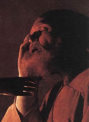 La nuit, sculptée par la lumière, révèle un sentiment étrange, vacillant entre quiétude et inquiétude. La frontière entre les deux états est mince. A quoi cela tient-il ? A la quantité de zone d'ombre sur le tableau ? Le chemin de la lumière dans l'espace représenté accentue la suggestion de certains reliefs au profit d'autres, tus. Dans le tableau de DE LA TOUR, l'éclairage n'est pas réaliste car le vieillard devrait avoir le visage violemment éclairé et déformé par la lumière de la chandelle. Le peintre guide notre regard et construit notre réflexion à travers cette lumière d'essence divine. Quel message porte t-elle ? Le spectateur comprend à travers le sommeil paisible de St. Joseph qu'« il est dans l'acceptation, prêt à être réveillé,« éclairé' ». »1 L'ambiance paisible envahit le spectateur, bercé par la lumière et conforté par le sommeil du vieillard. Le rêve traverse l'image pour nous rejoindre. Est-ce un instant éphémère ou un moment d'éternité ? Georges De La Tour peint le silence.